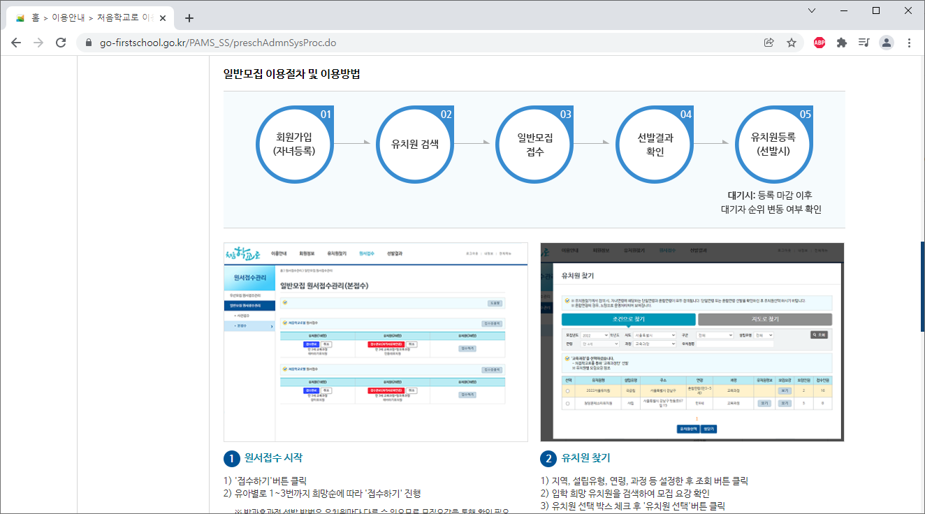 여기서 주의사항이 있는데 처음학교로에 참여한 유치원이라고 해도 유아모집을 이곳에서 안하는 경우도 있다고 하더군요. 때문에 이런 경우에는 교육기관이나 지자체를 통해서 알아보셔야 하겠군요.