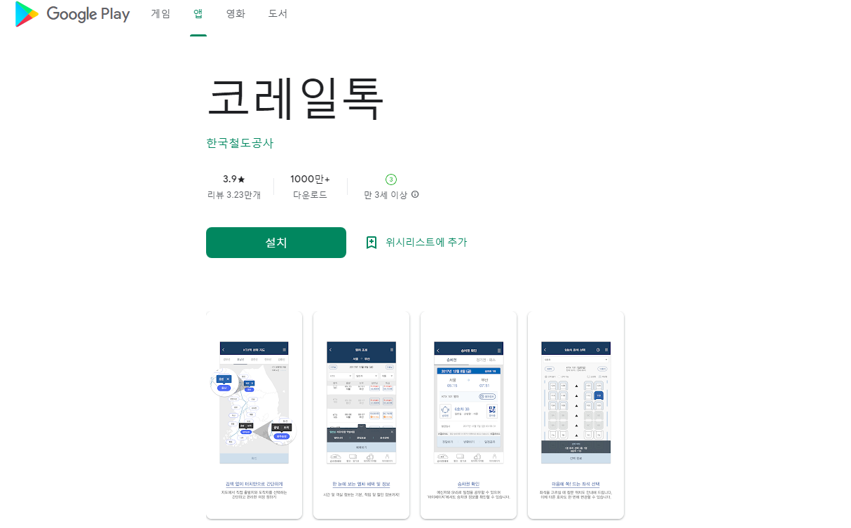 컴퓨터가 아닌 모바일에서 이용을 하실 때에는 편리하게 어플을 다운로드 및 설치를 하실 수 있습니다. 어플은 '코레일톡'이라는 이름으로 공식적으로 제공되어지고 있습니다.