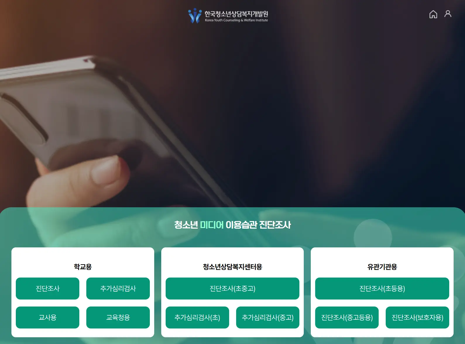 청소년 미디어 이용습관 진단조사 학교용 진단조사 추가심리검사 교사용 교육청용 청소년상담복지센터용 유관기관용